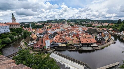 チェスキークルムロフへ日帰り 滞在4時間のタイムアタック 北側の門から旧市街へ チェスキークルムロフ城 ガイドツアーはパス トンネルのような通路 小さな窓から素晴らしい景色! こりゃ人気があるはず そこらじゅうが綺麗で可愛い 凄いボリュームの「トル…